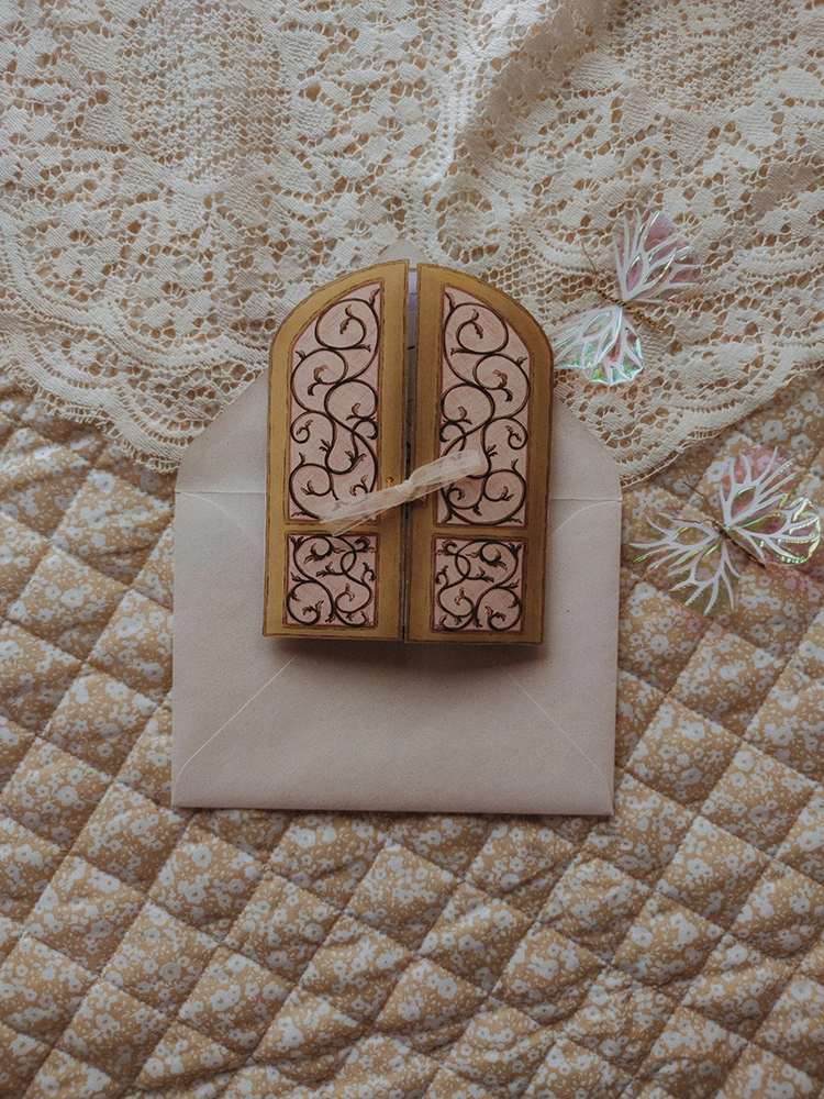 - – une carte illustrée, en forme de porte qui s’ouvre sur un monde merveilleux. Tu pourras y inscrire tes rêves et tes vœux à l’intérieur.