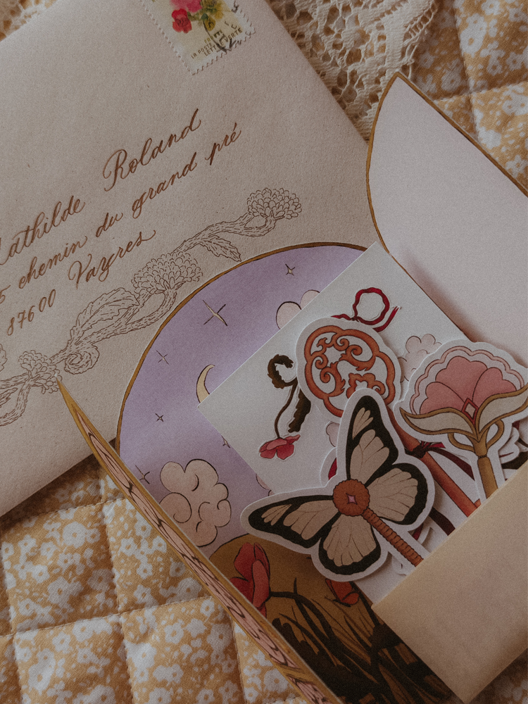 💌 Le Courrier des Songes est toujours envoyé séparément, dans sa belle enveloppe dédiée avec ton nom et ton adresse calligraphiés à la plume. L’envoi en lettre simple est inclus dans le prix, tu peux toutefois opter pour l’ajout d’un suivi à la validation de la commande si tu le souhaites.